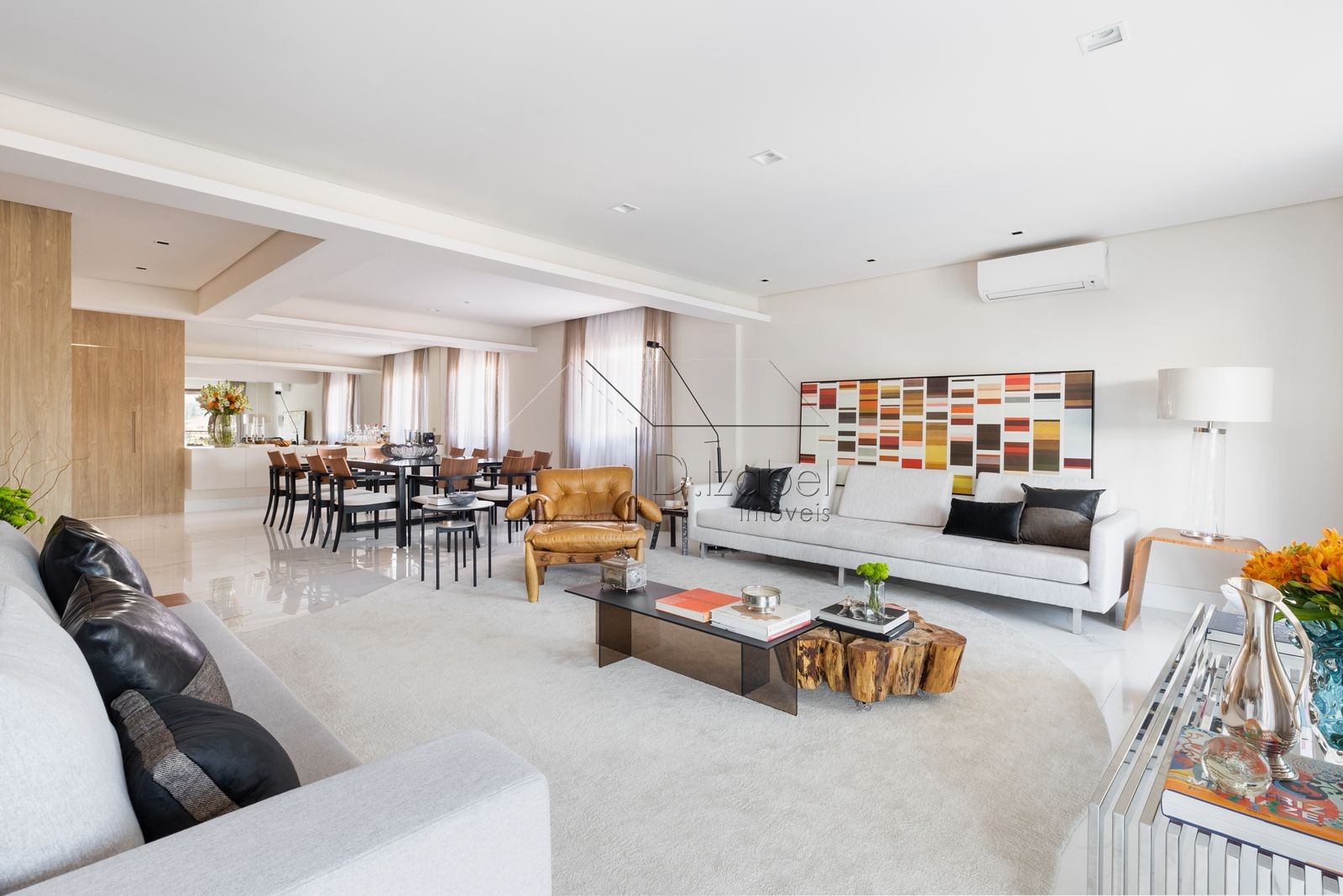 conforto e sofisticação em cada detalhe. A sala é espaçosa, com três ambientes